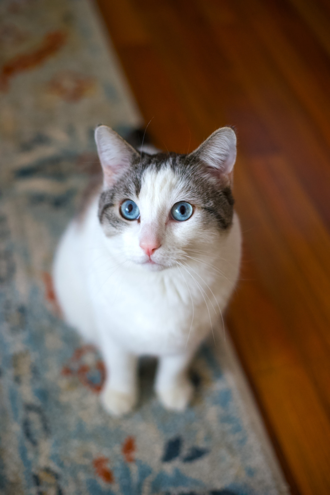 I am a sweet, curious boy who loves to chat and nap. I am generally always near my brother, playing with a toy, each other, or just cuddling. I am a very gentle and patient boy; I love to be petted, even on my belly. But I will walk away once I have had enough pets. I am quite the lap cat and very sweet. I love wand toys, and I hope for at least a few sessions a day playing with you. It's so much fun! If you are looking for a bonded pair of adorable, stunning cats, look no further than us! #blueyedcutie #bondedpair