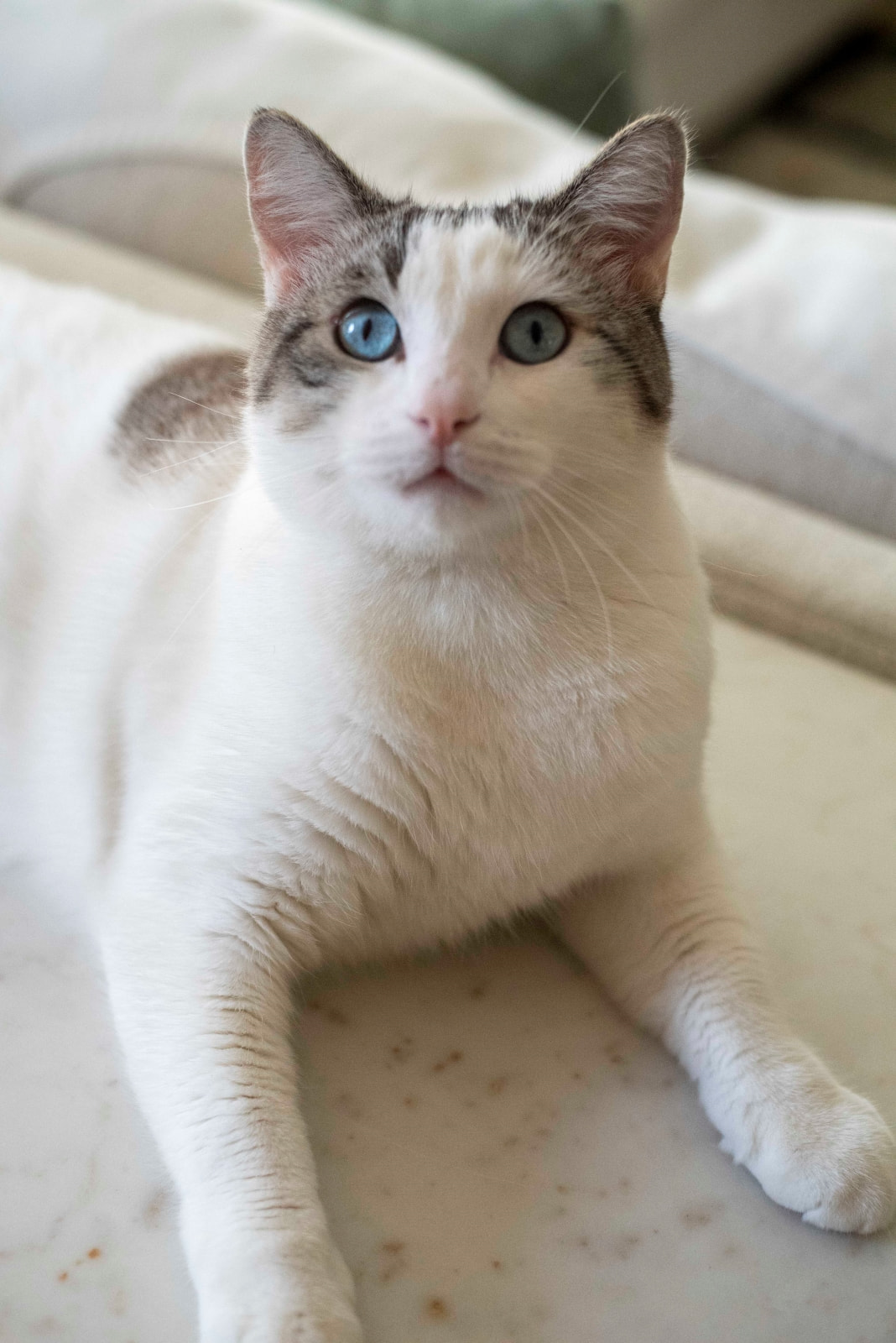 I am a sweet, curious boy who loves to chat and nap. I am generally always near my brother, playing with a toy, each other, or just cuddling. I am a very gentle and patient boy; I love to be petted, even on my belly. But I will walk away once I have had enough pets. I may not be a lap cat, but I am generally always in the room you are in. I love wand toys, and I hope for at least a few sessions a day playing with you. It's so much fun! If you are looking for a bonded pair of adorable, stunning cats, look no further than us! #blueyedcutie #bondedpair