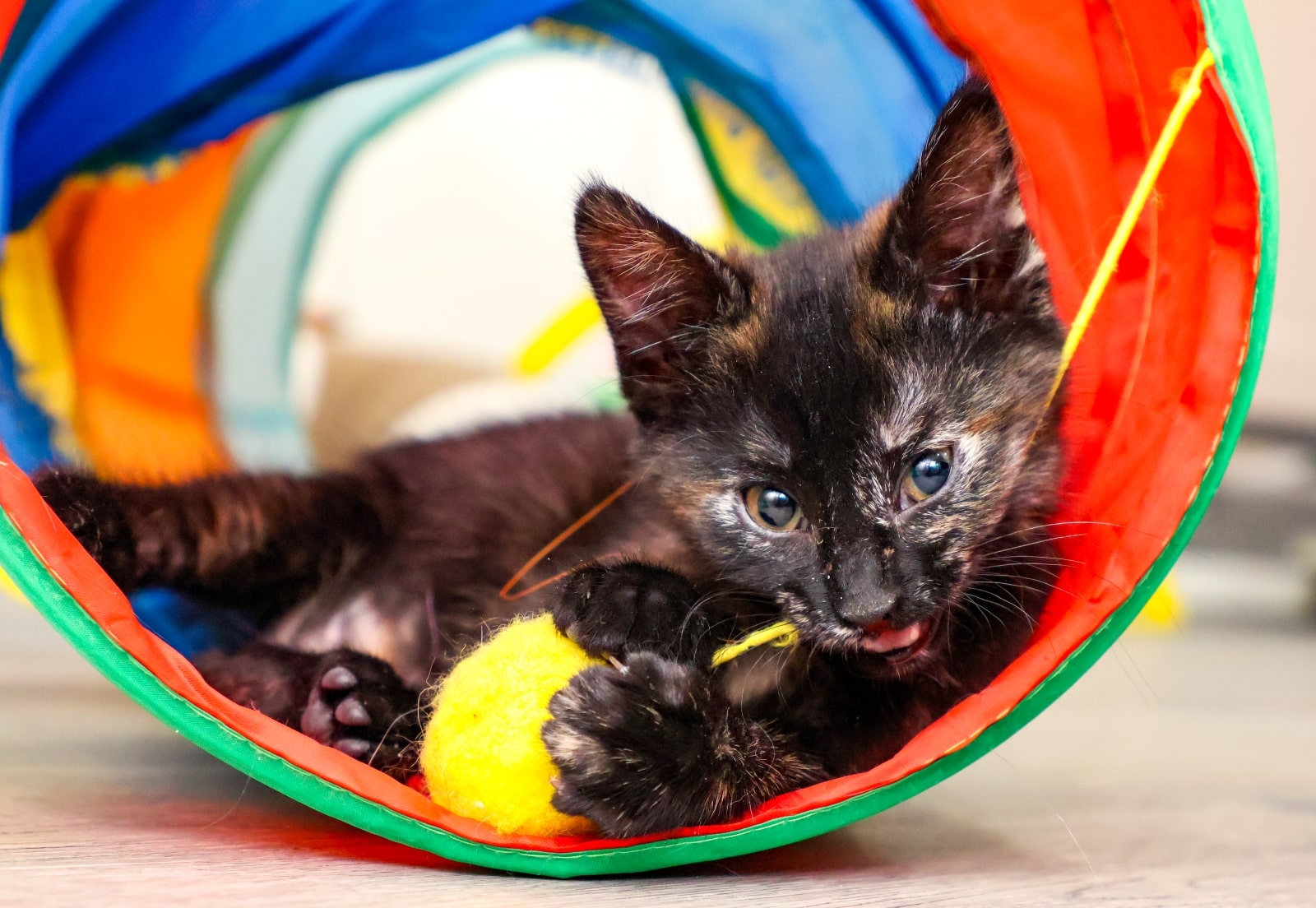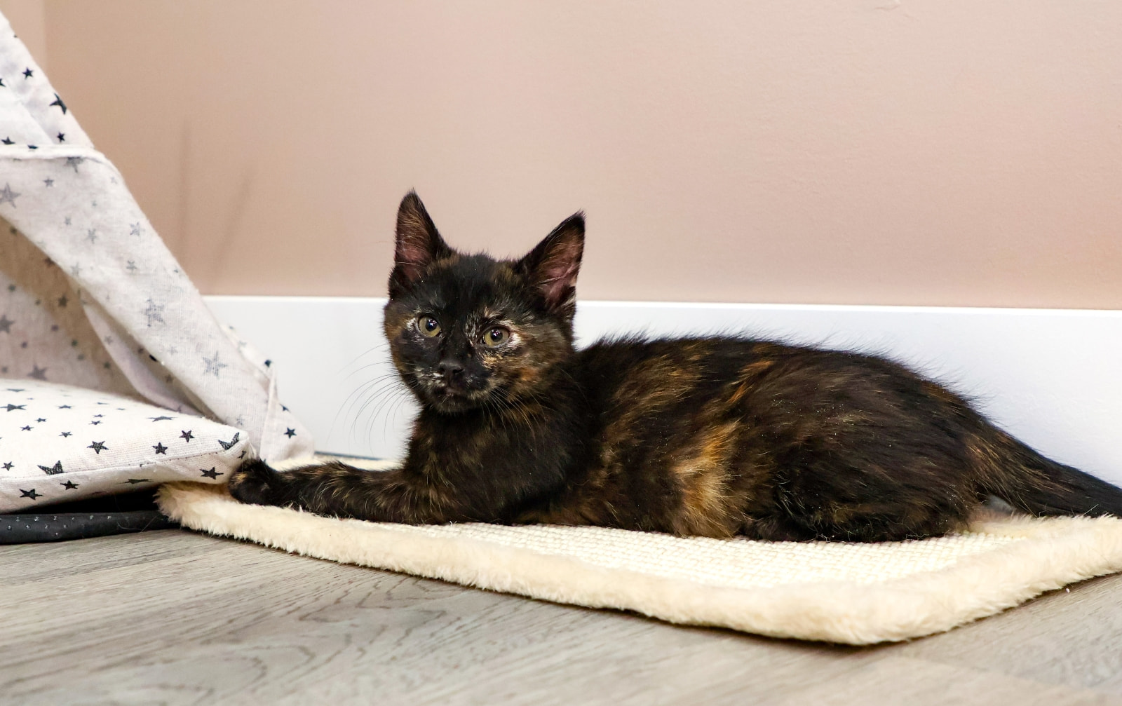 I'm a sweet, very playful kitten. I love to play, but I also enjoy a pet or snuggle now and then. I have so much energy, I can't bear to sleep! I love playing with my siblings and can't wait to find my forever home. #tortiebeauty