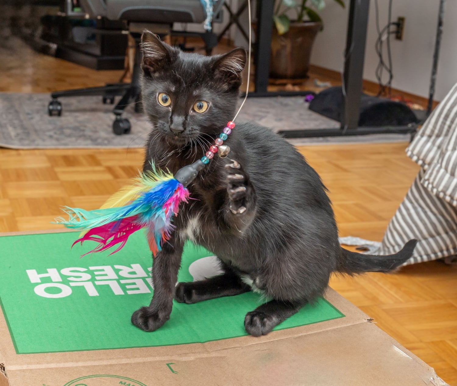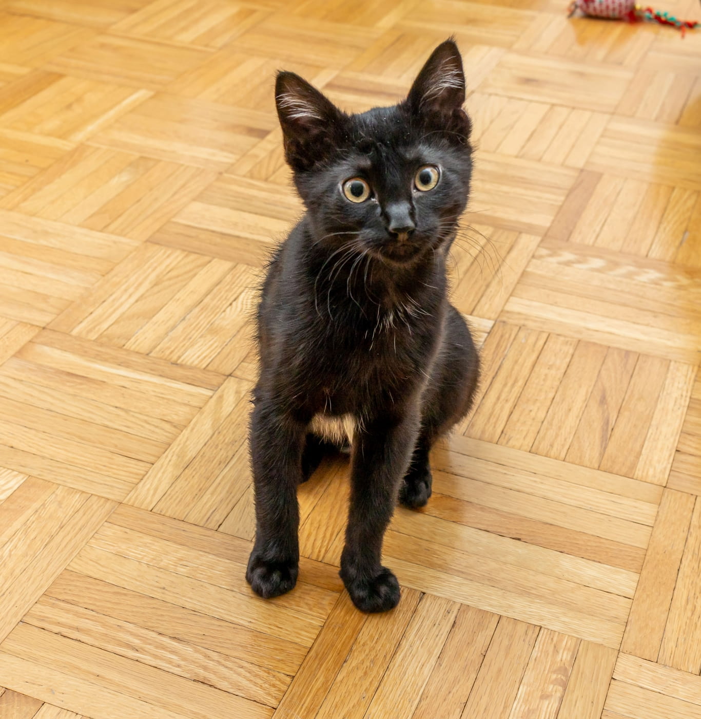 I must be adopted to a home that has a small, young cat who is cat friendly and who would love to play with me. Otherwise you would need to adopt me with another kitten buddy. I would not be happy as an only kitty and I would pester a senior kitty if it was just me. I just love love love to play with other kitties for hours. Bigger cats can be too rough with me so I need a smaller kitten buddy or small cat.