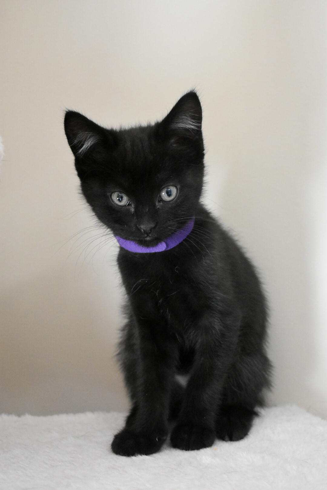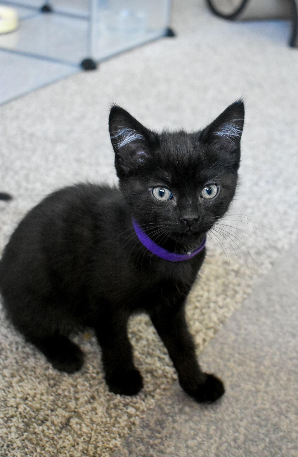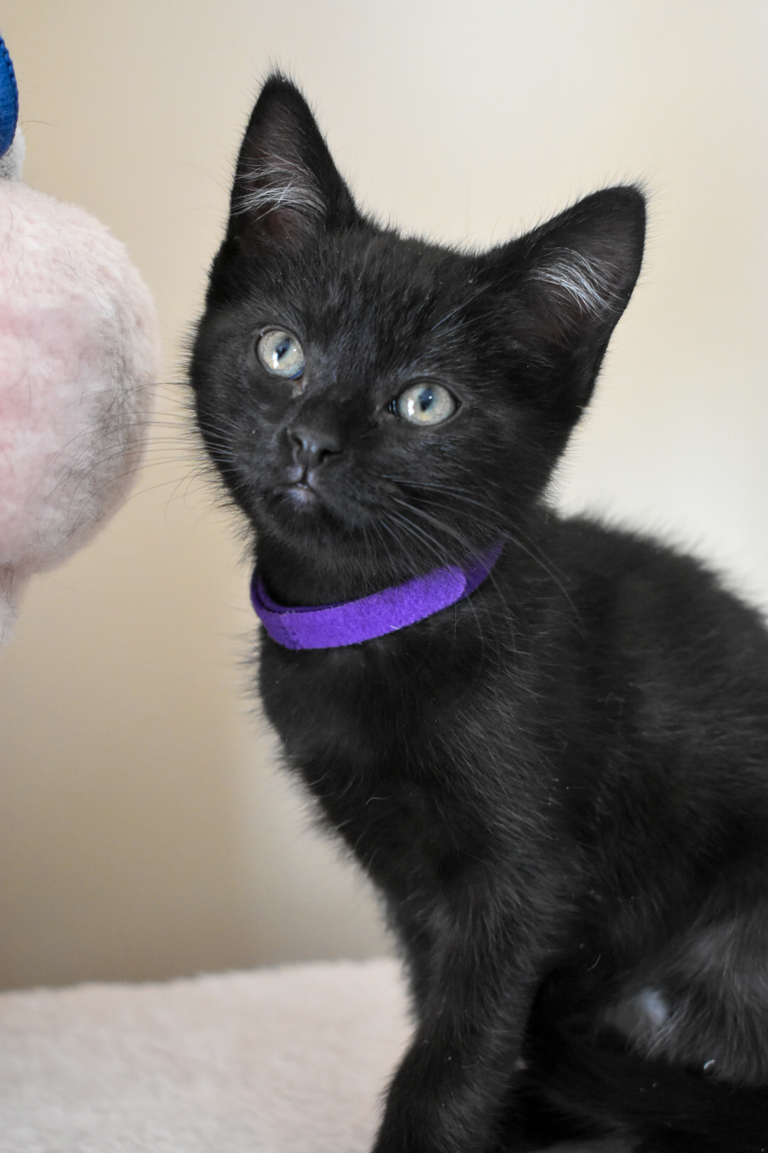 Hi, my name is Chatting (Purple is my nickname!), and even though I'm the smallest in my litter, don't be fooled – I'm also the bravest! I'm curious and love exploring on my own. I'm friendly, but not a lap cat. I love attention, but not in a clingy way. I prefer curling up with another kitty to sleep. I have a lot of energy and a big personality. I'm playful, confident, and sometimes a little crazy in the best way. I'm vocal, especially if I think it's time for food. Love food! If you're looking for a confident, playful, and affectionate kitten who's full of personality, I might be your girl.