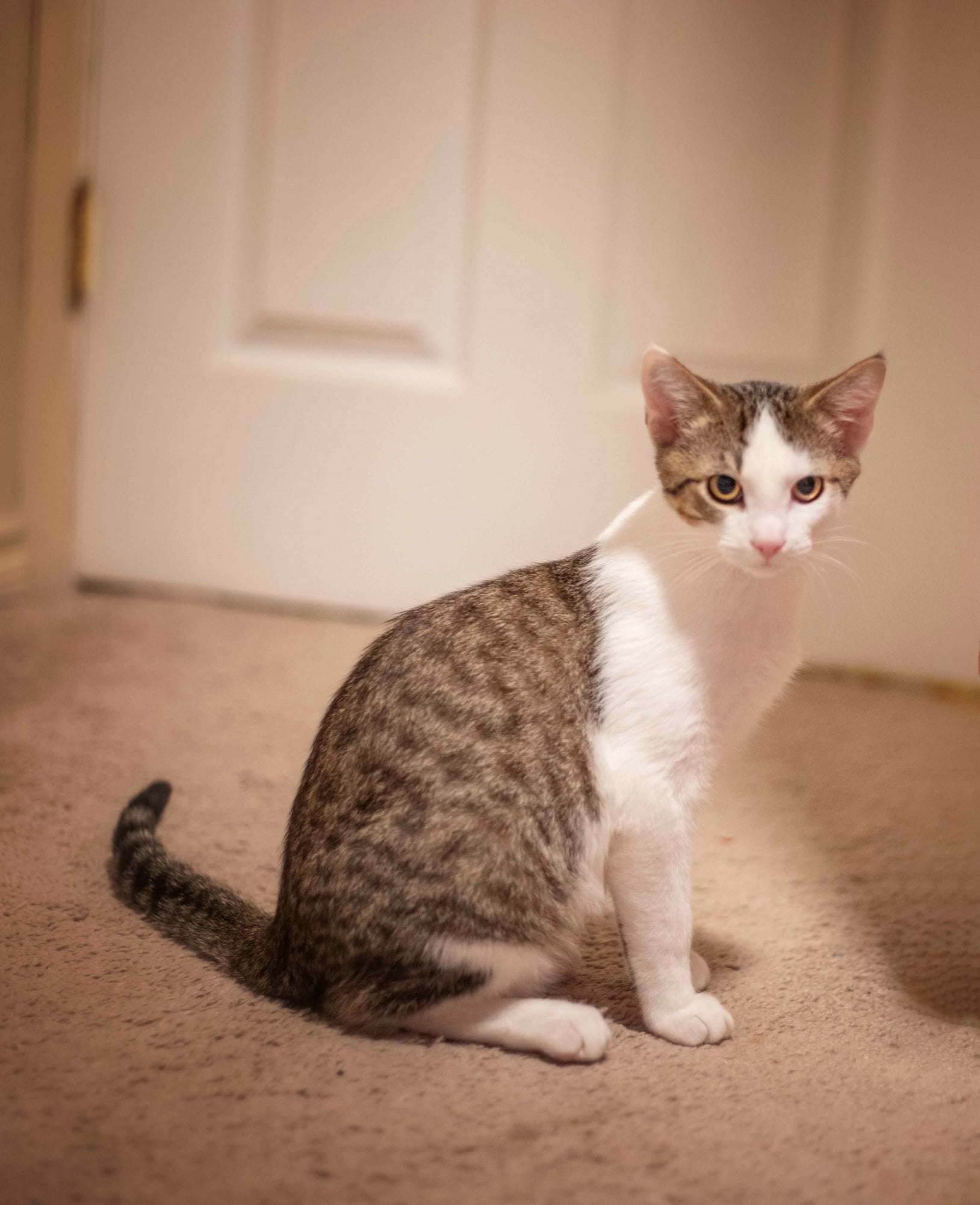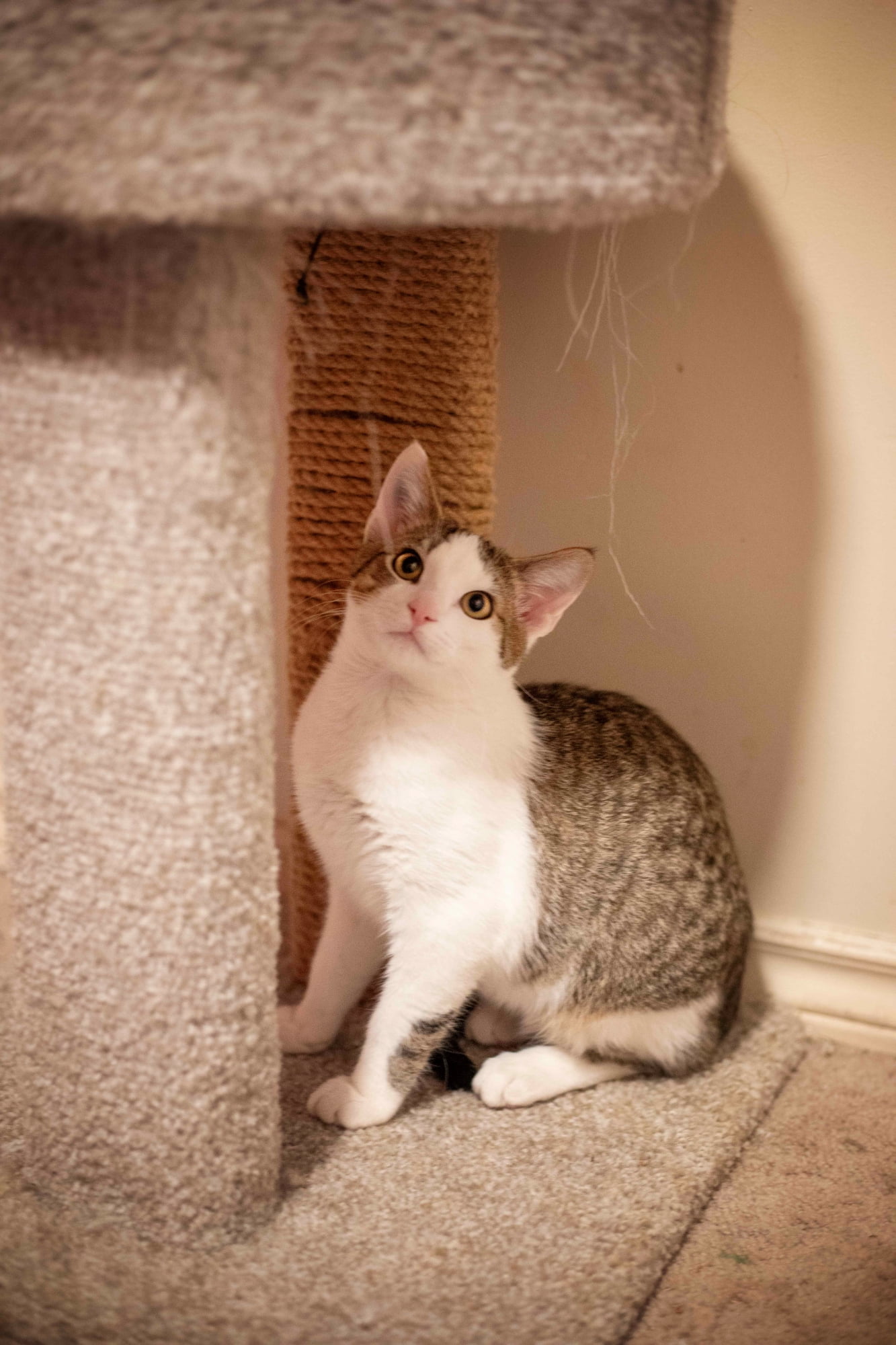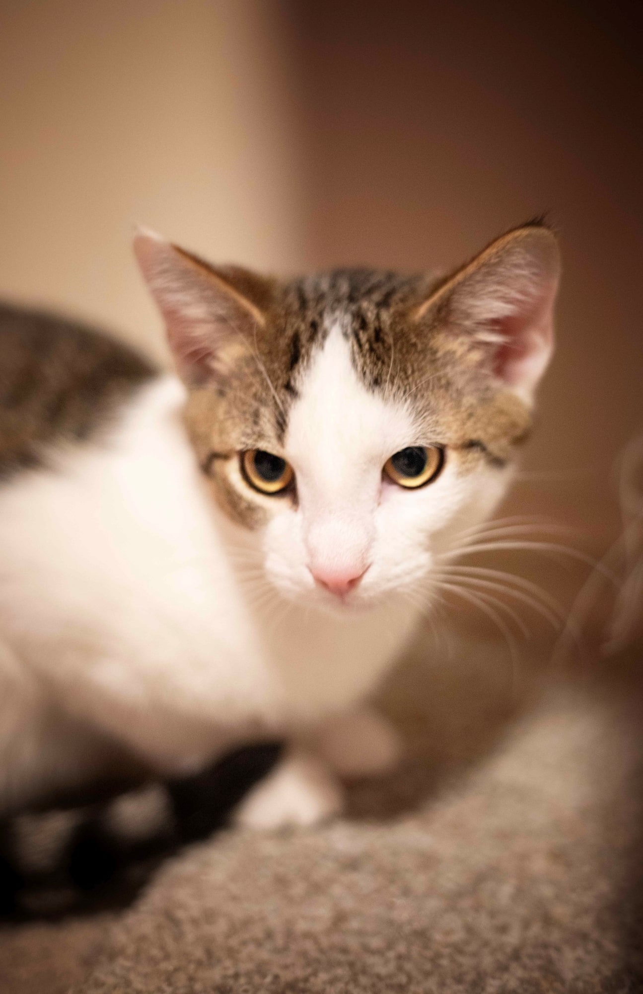 I am one handsome spotted boy. I have quite the cool spots and such a regal look to me. I love to play but not as over the top as my brother. I enjoy exploring the house and finding toys to play with. I am the purrfect kitten for someone looking for a kitty who is independent but still has as affectionate side. I have the most expressive face, you can tell if I am annoyed. Like if I am woken up to get photographs when I wasn't quite ready for my close up, the stink eye I can give is quite impressive. Oh well I still look good though. #camerashy #independentcutie