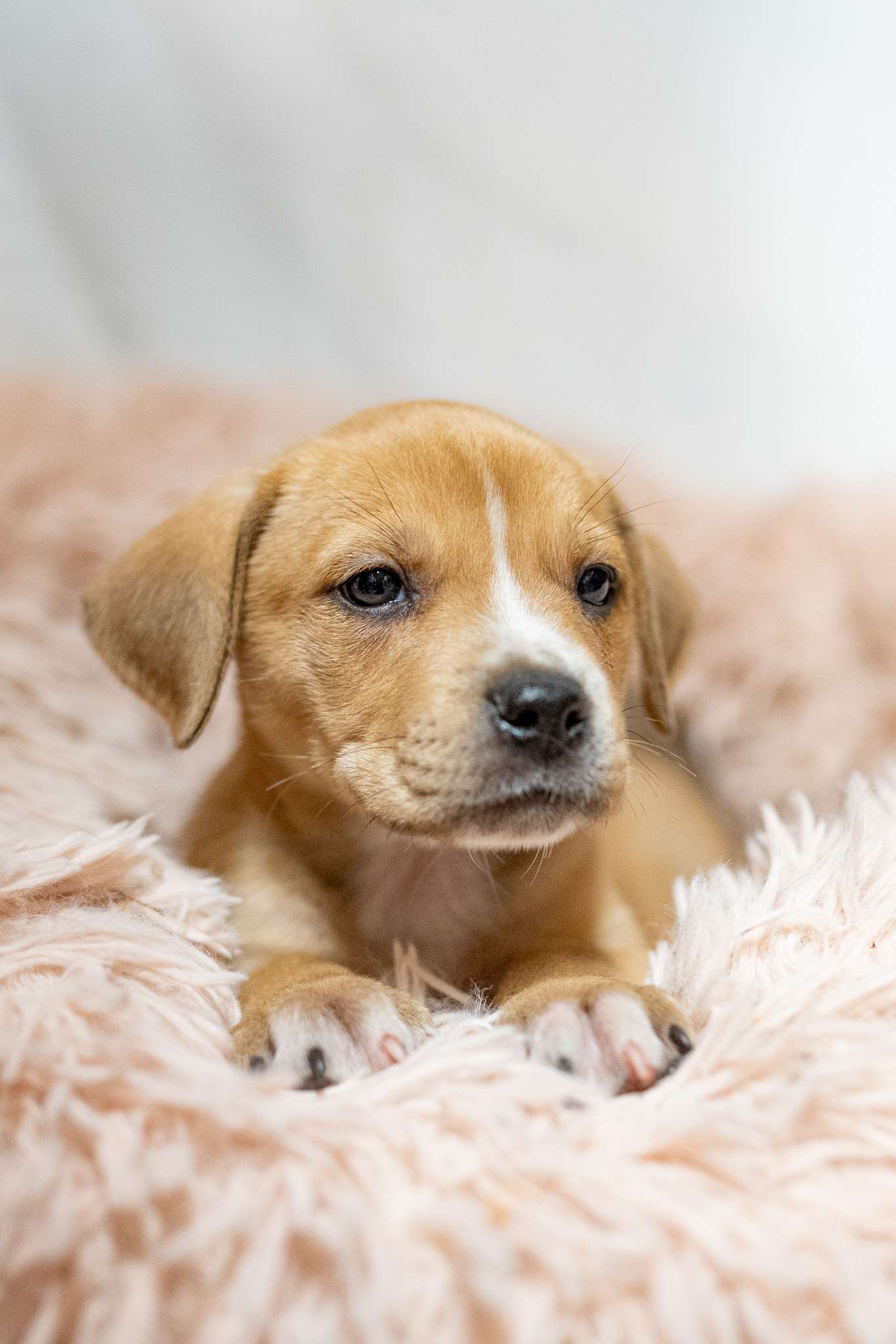 Hi! I’m Hattie, a little sweetheart with a big personality. I love people and show it with wiggles, kisses, and happy tail wags. My favorite thing is when someone laughs, I think it’s the best sound ever. I’m playful, curious, and always up for a new adventure, even if it’s just exploring a new corner of the room. I have a soft side, too, and love curling up close when it’s time to rest. I’m learning every day and love being told I’m a good girl. My joy is contagious, and I’ll always be there to brighten your day. If you’re looking for love wrapped in fur, I’m the one for you.