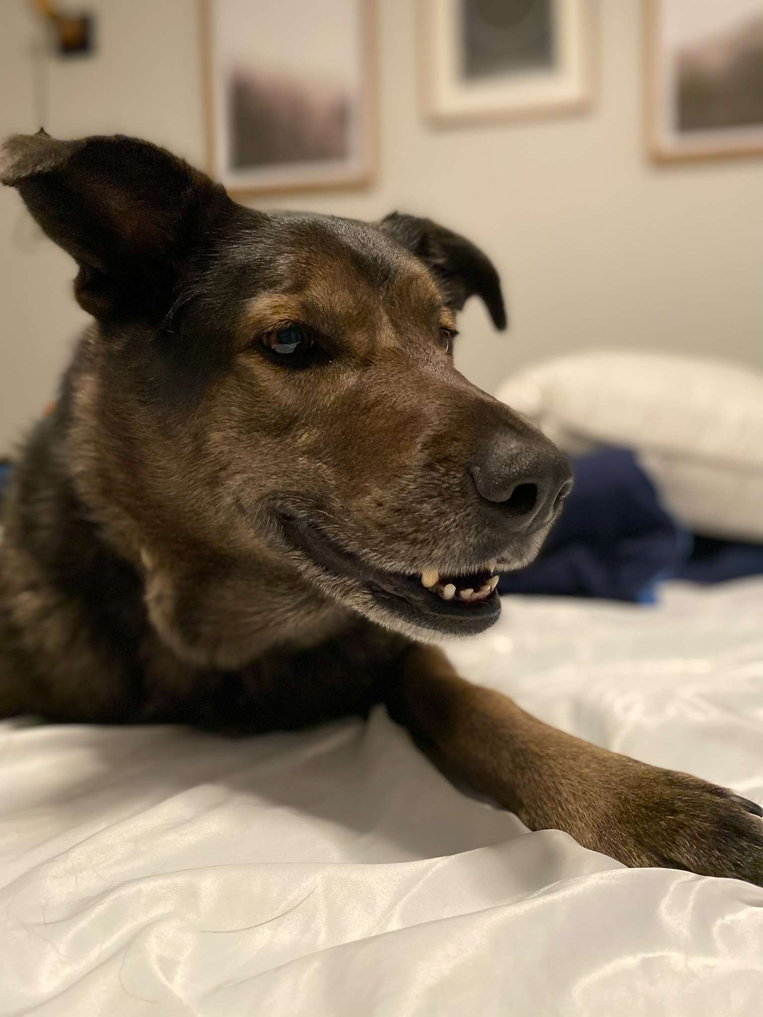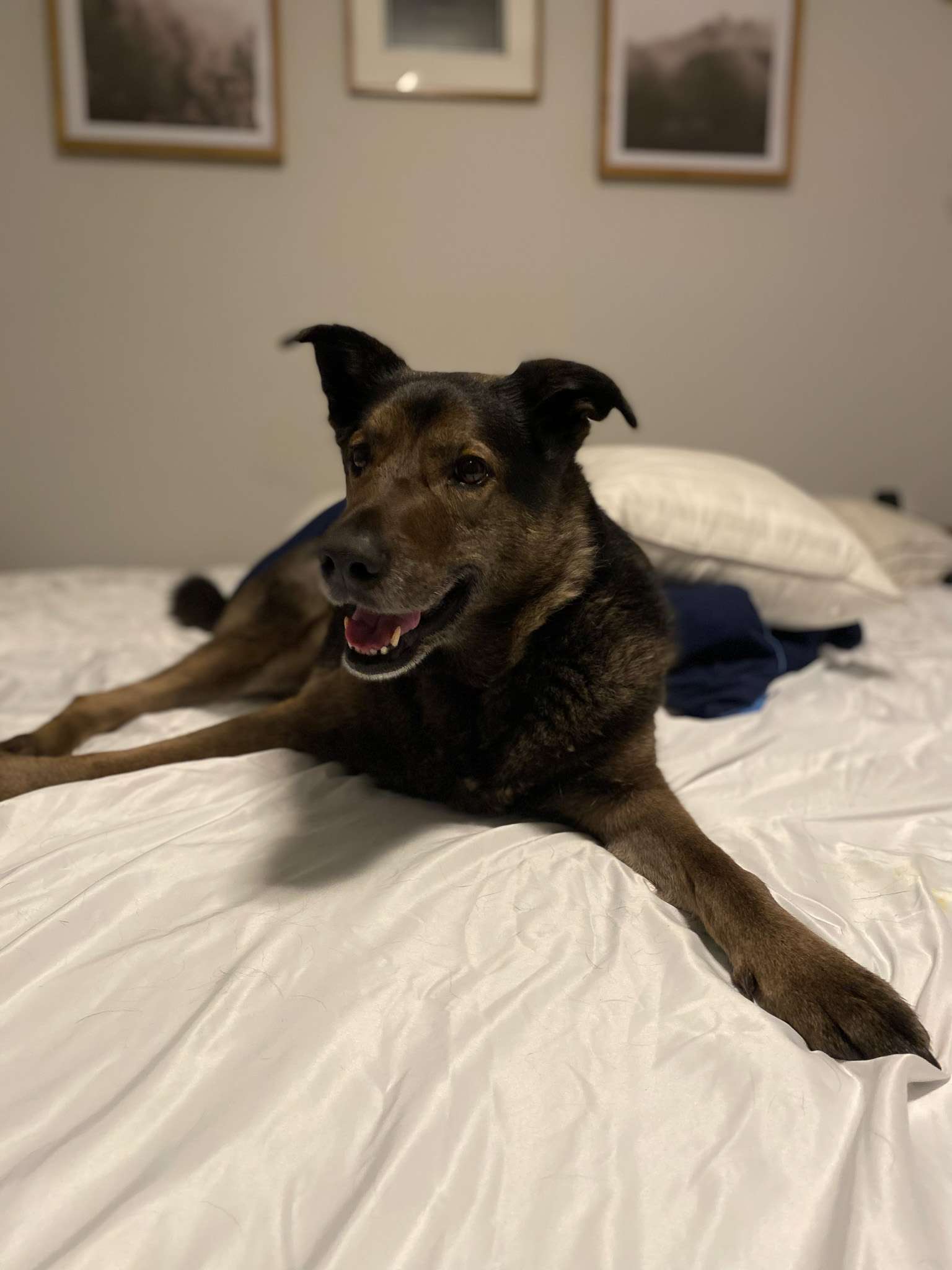 Ivy is a sweet, sensitive, and strikingly beautiful German Shepherd/Border Collie mix with a radiant smile, stunning coat colors, and charming floppy ears. She’s a smart, eager-to-please dog who loves learning new tricks and engaging in mentally stimulating activities. Ivy’s favorite pastimes include playing chase in the backyard and snuggling with her favorite people. She’s a loyal companion who flourishes in a calm, predictable environment and would love a home that offers plenty of games and mental enrichment. While Ivy may need time to adjust to new surroundings, her affectionate nature and devotion make her a truly rewarding companion.