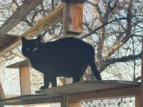 Jinxie was a SNR kitty by a local rescue 9 years ago and released back to her original space outside of a commercial warehouse in Spruce Grove where she lived alone for 8 years. She was noticed by a community member looking for food in the cold February of 2025 at a dumpster. They couldn't leave her to fend for herself so decided to trap her and bring her into a warm home to give her a better life. She currently enjoy her own room with access to a private catio, but can remain guarded outside of her safe place most likely due to the resident cats.