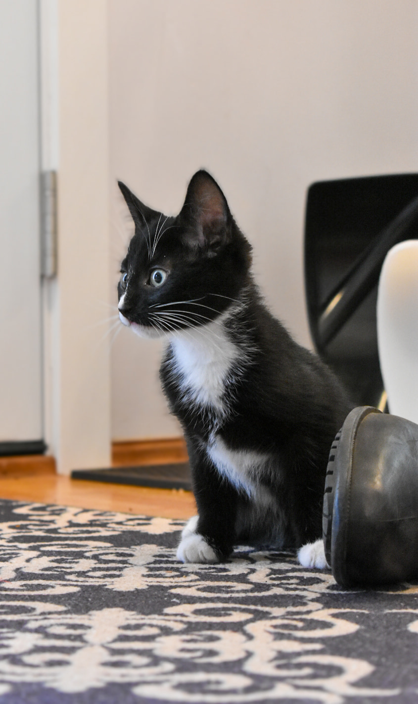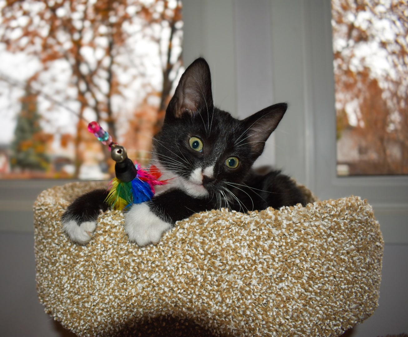 I must be adopted into a home with another youngish, cat-friendly cat who would love to play with me and be my friend. With slow, proper introductions, of course. Otherwise I will need to be adopted with Sphene. In fact, that would be preferable. I love to play with other cats, and I would not be ok as an only cat. But I am also independent and happy to play with myself, so I might be ok with a somewhat older cat who is still youngish as long as I have plenty of toys and playtime with you.