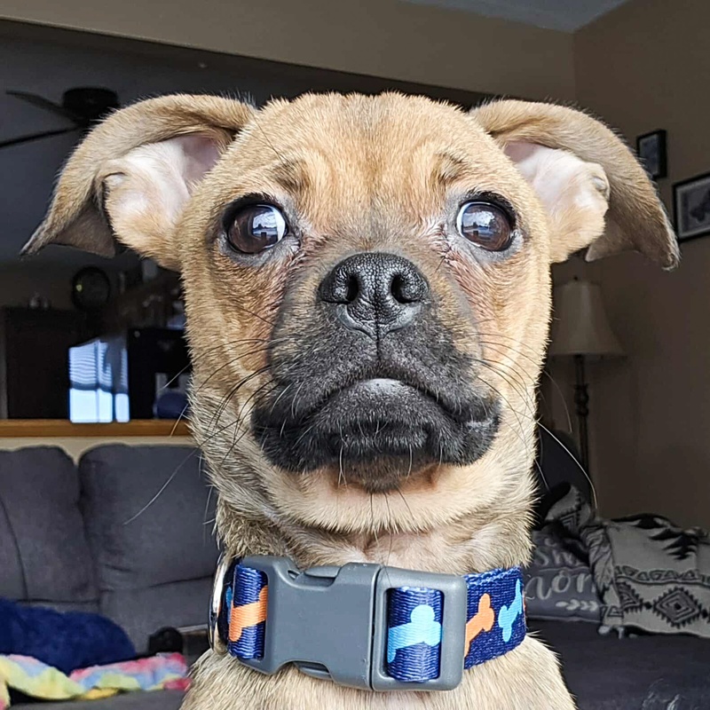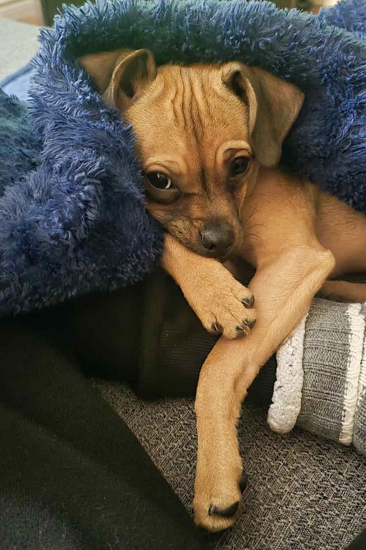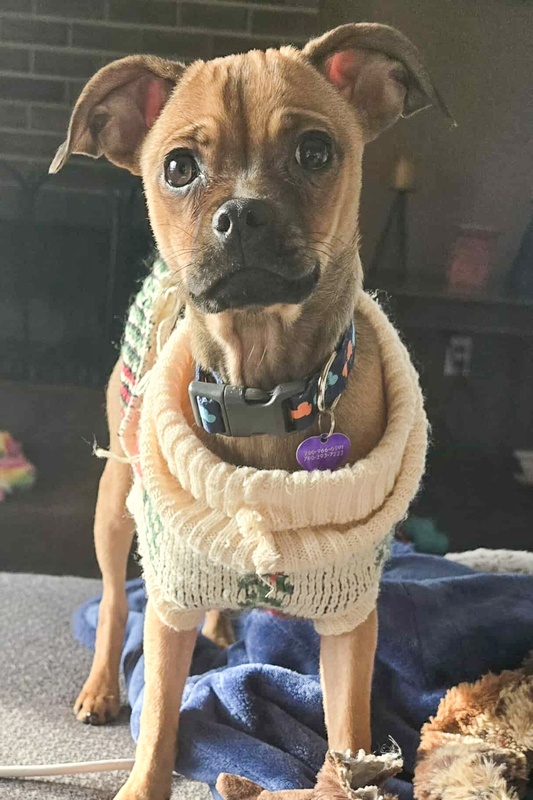 Hi, I’m Lainey, I'm a professional sweetheart, part-time toy acrobat, and full-time cuddle expert. I absolutely love snuggling up with my people, but I’m also happy to lounge on my own when it’s time to relax. I’m a pretty well-mannered girl and not much of a mischief-maker, so you won’t find me chewing things that aren’t mine. Honestly, I entertain myself just fine by tossing my toys in the air and catching them like it’s my personal comedy show. I love chew bones, especially when I can bury them somewhere safe. I take this job very seriously and might even let out a tiny whimper until I find the perfect hiding spot. I’m a smart cookie too; I already know “sit” and “wait,". At bedtime, I settle right onto the bed and relax without a peep. If you’re looking for a gentle, funny, and thoughtful companion who knows how to be both playful and calm, I just might be your girl.