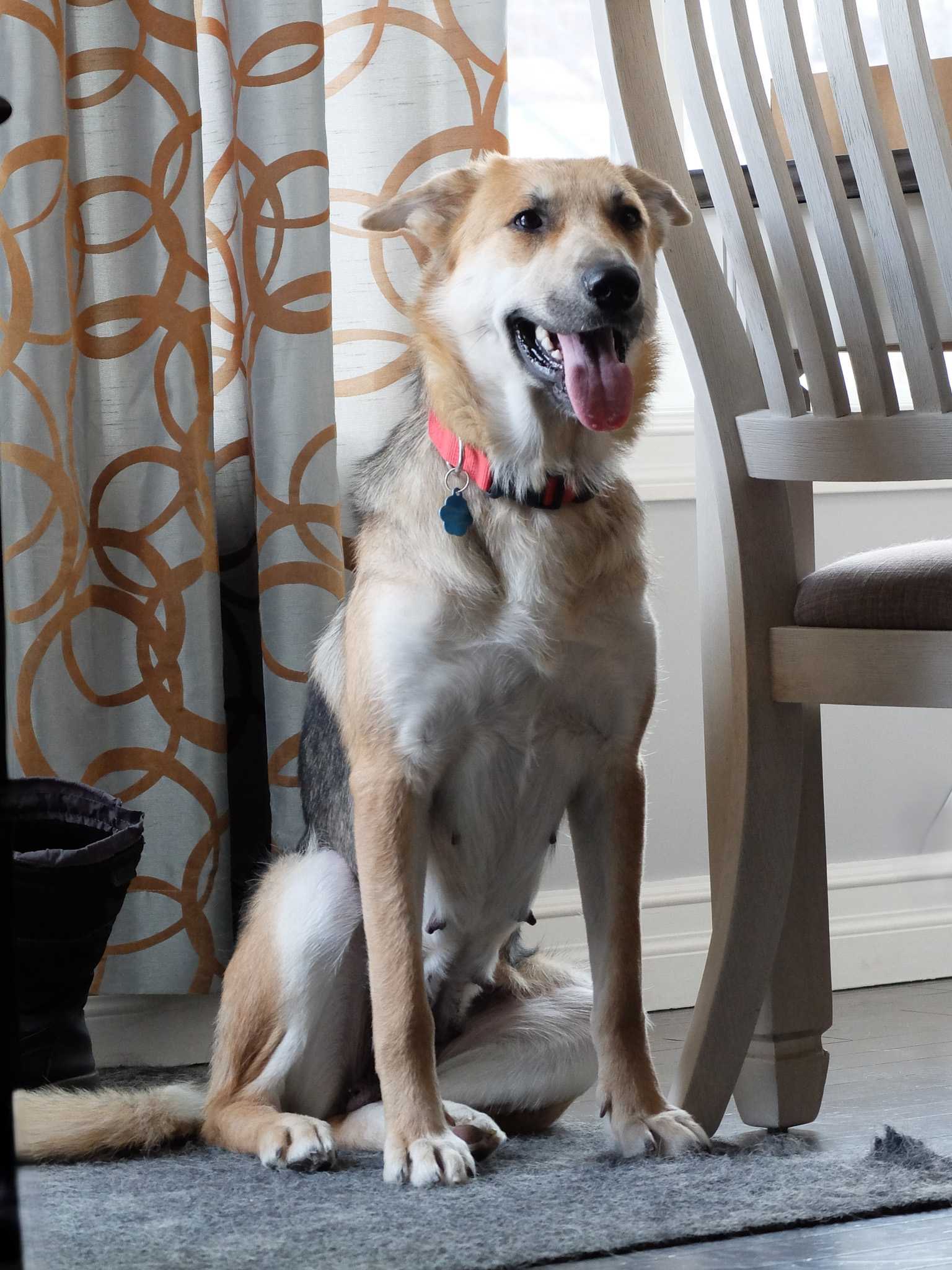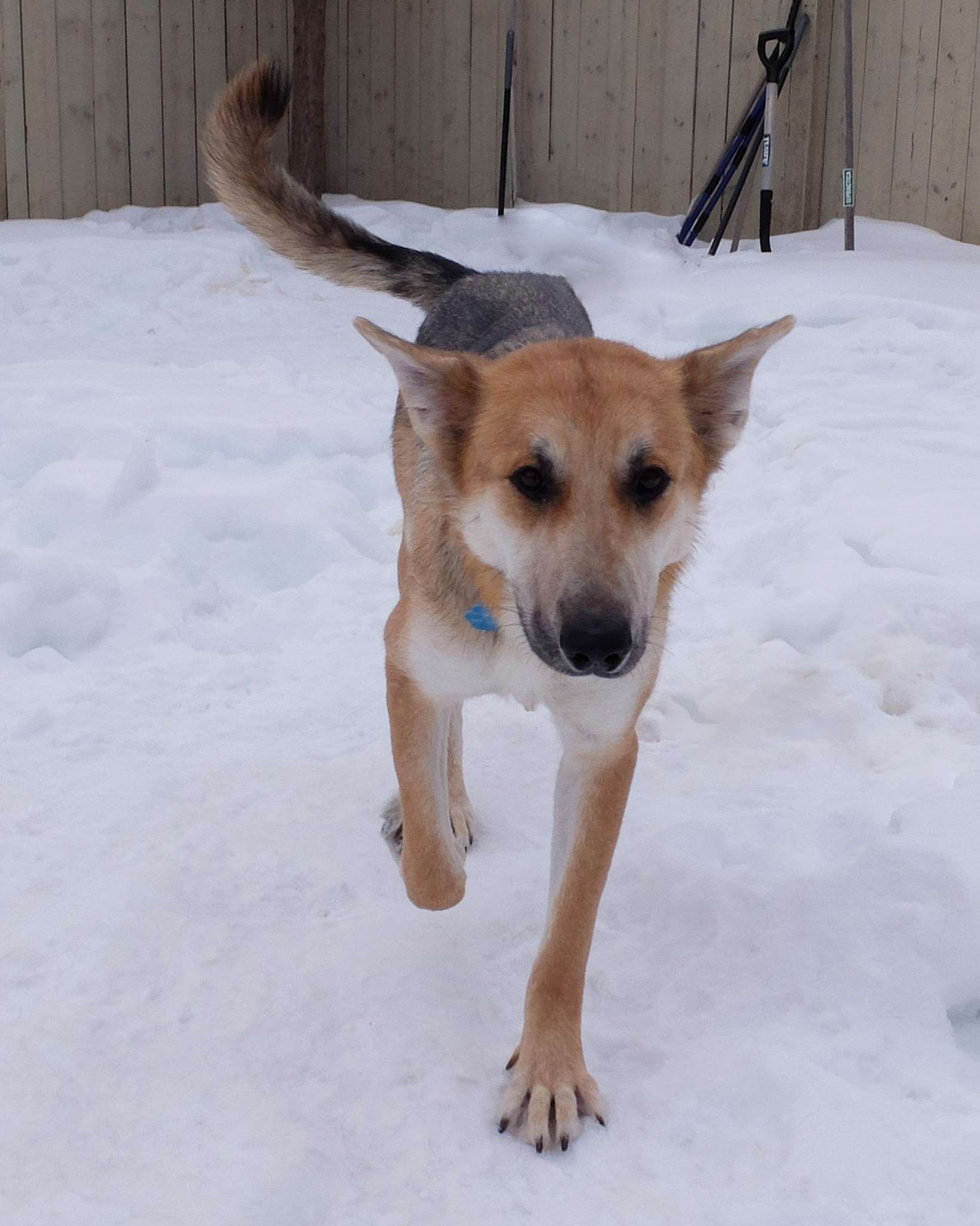 I am house trained. I do have some separation anxiety, so would be best suited to a home where she is not left alone for long periods. A household with another dog is essential, as having a doggy friend brings me comfort and helps with my confidence. I am currently learning some basic commands and have already mastered sit, I'm a smart pup with a willingness to learn. To ensure we get off on the right paw, my adopters will be required to sign up for force-free training. You can find a list of great trainers at www.albertaforcefreealliance.com.