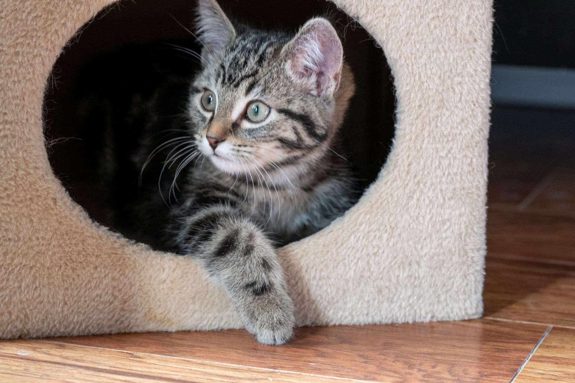 My mom was a stray cat with kittens that was trapped outside a home depot. Once we were older Zoe's took us babies in and helped fix our mom. Now we are all ready for our forever homes.