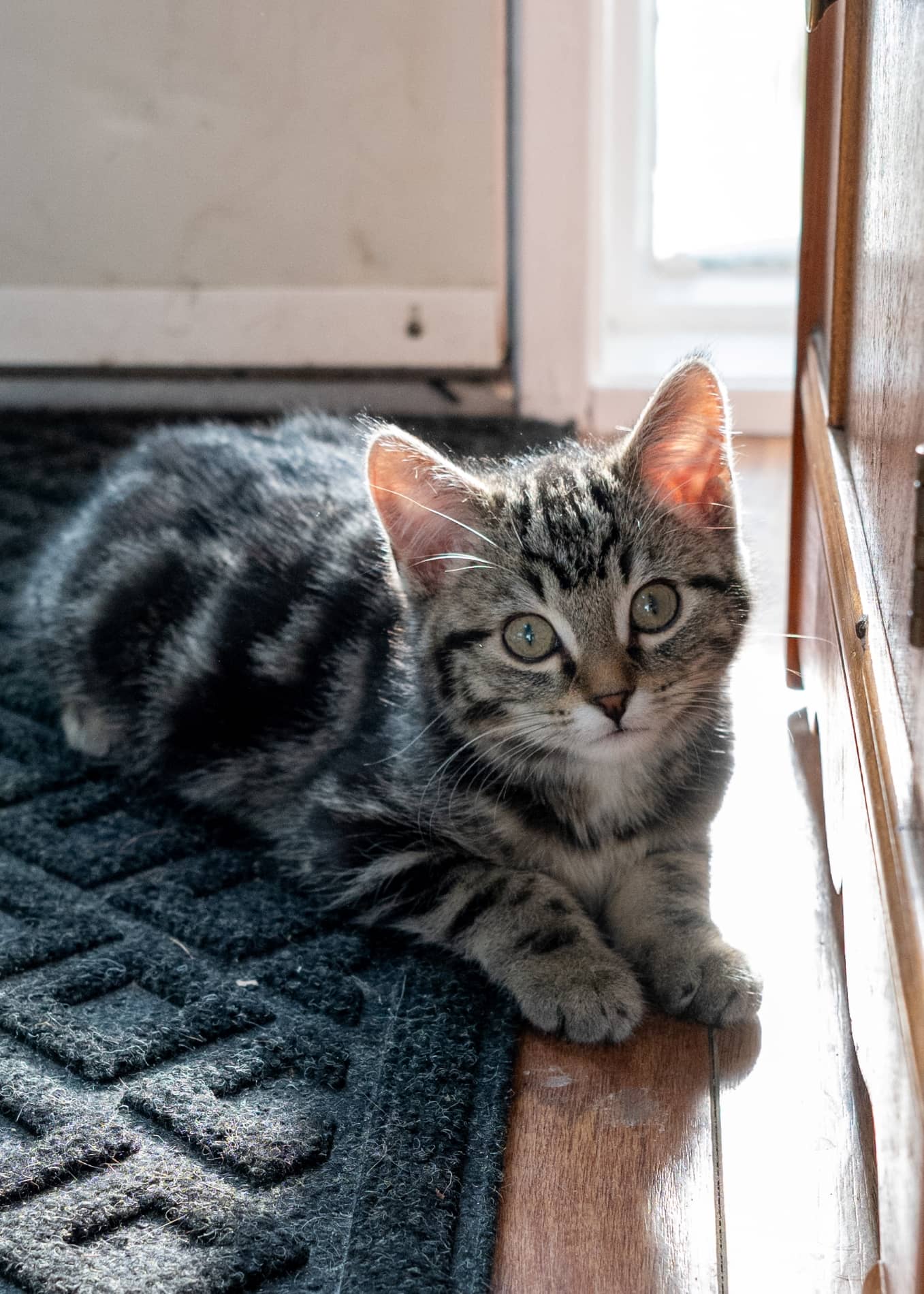 Hey there! I'm Macfie, the playful tabby of the litter! I love running around with my siblings, especially my buddy Home, and I’m always up for an adventure. I’m super brave and not shy at all—I'll happily jump up to hang out on your knee and enjoy some pets when I’m ready to wind down. I’ve got a lot of energy, so a home where I can play and explore would be perfect for me! I’m not demanding, but I do like being around people. I think I’ll settle into my forever home super quickly, and I’m sure I’ll stand out with my unique tabby markings! If you love an active, fun kitty, I’m your guy! #highhighenergyboy