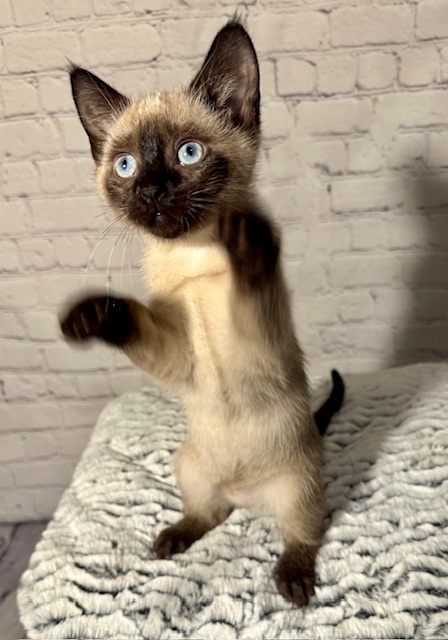 I love to play with my siblings. I must be adopted to a home with a young cat friendly cat for me to play with for years to come or with a sibling.