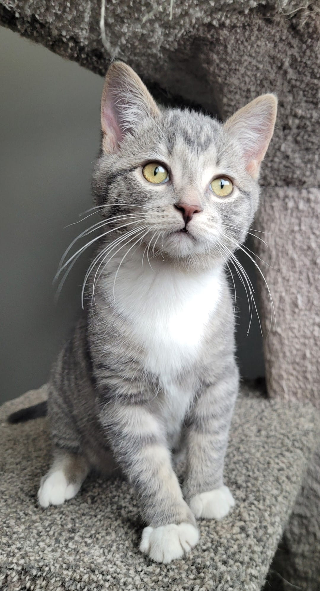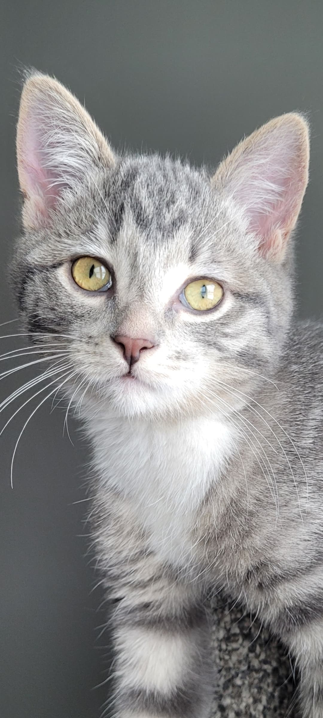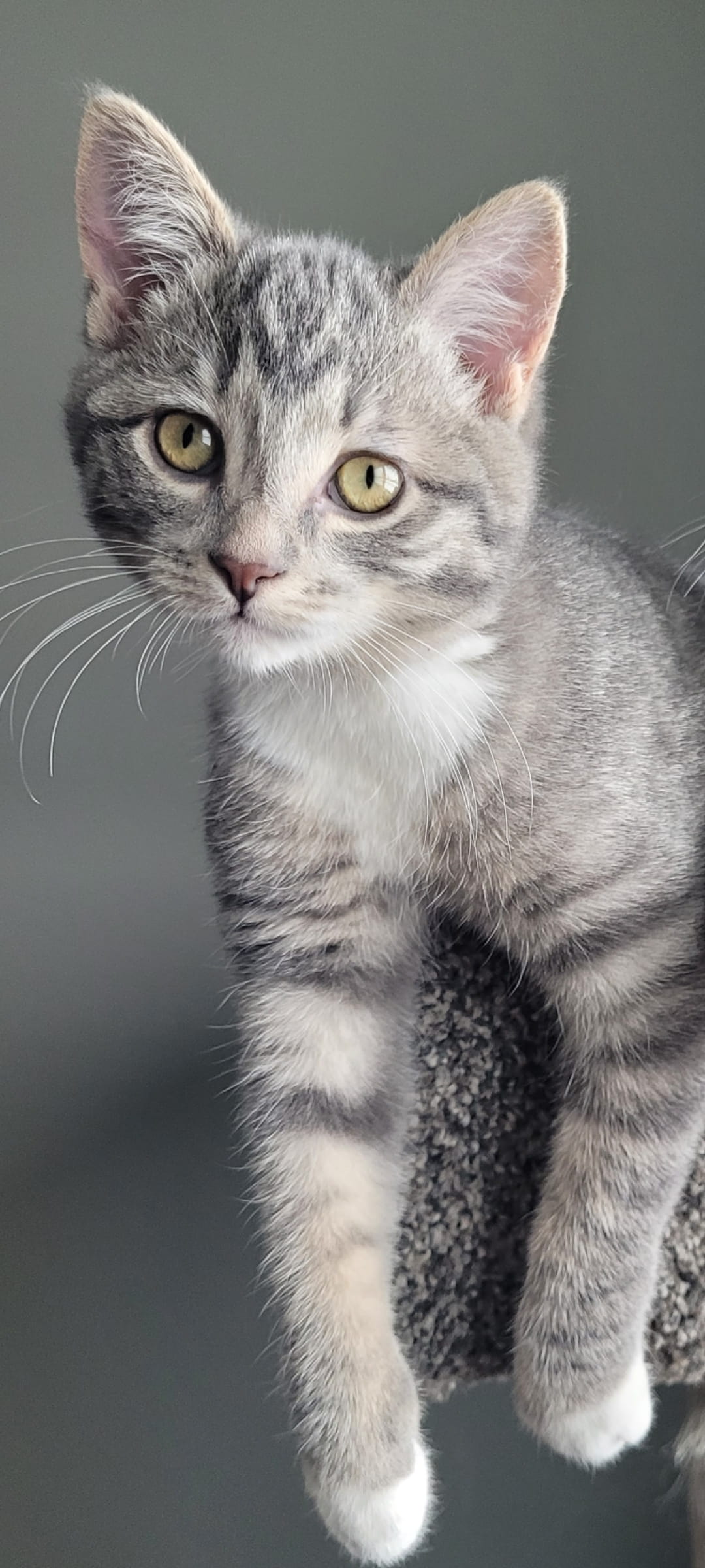 I must be adopted to a home with my sister, Maligne, as we are besties and do everything together. We are good with other cat-friendly cats with slow, proper introductions. One of the resident cats doesn’t like us but we have been good about giving her space. We love to zoom around and play with our springs and our paper balls and our ping pong balls. Once we power down and all we want to do is cuddle. We like sitting on your chest and quickly fall asleep as we purr in unison.