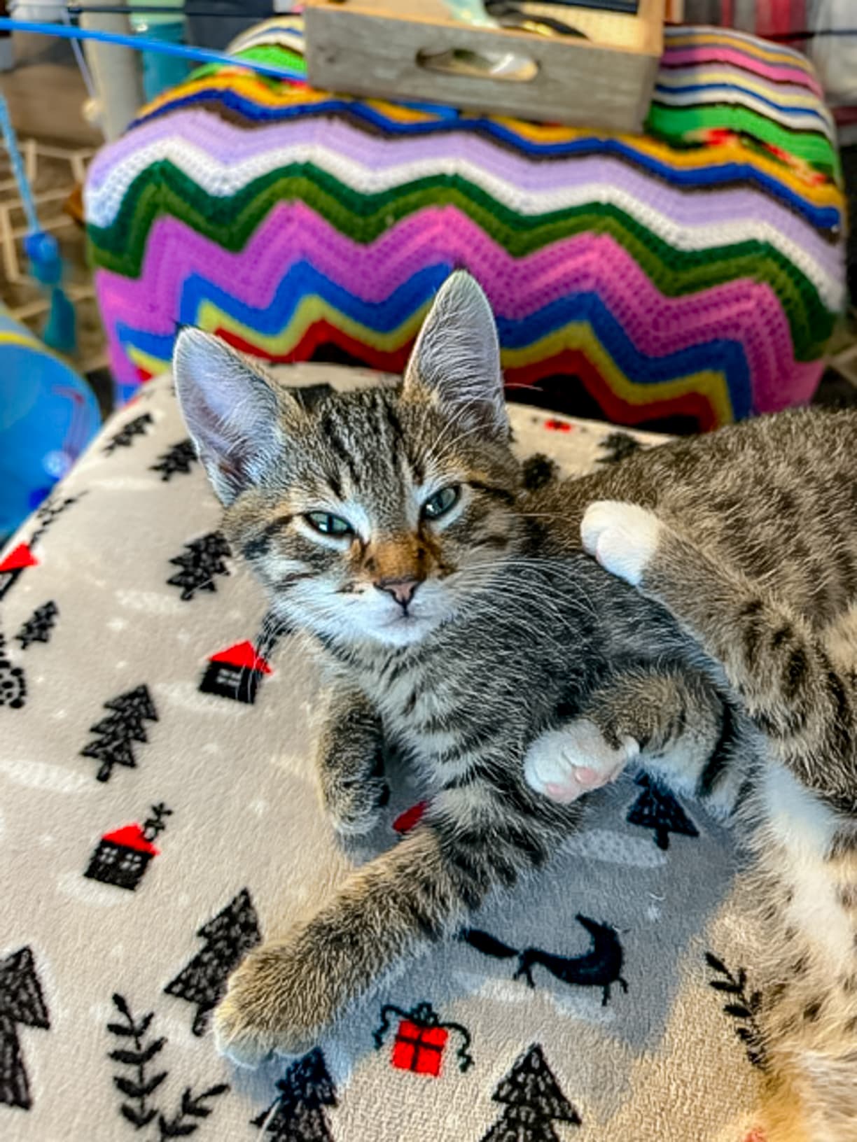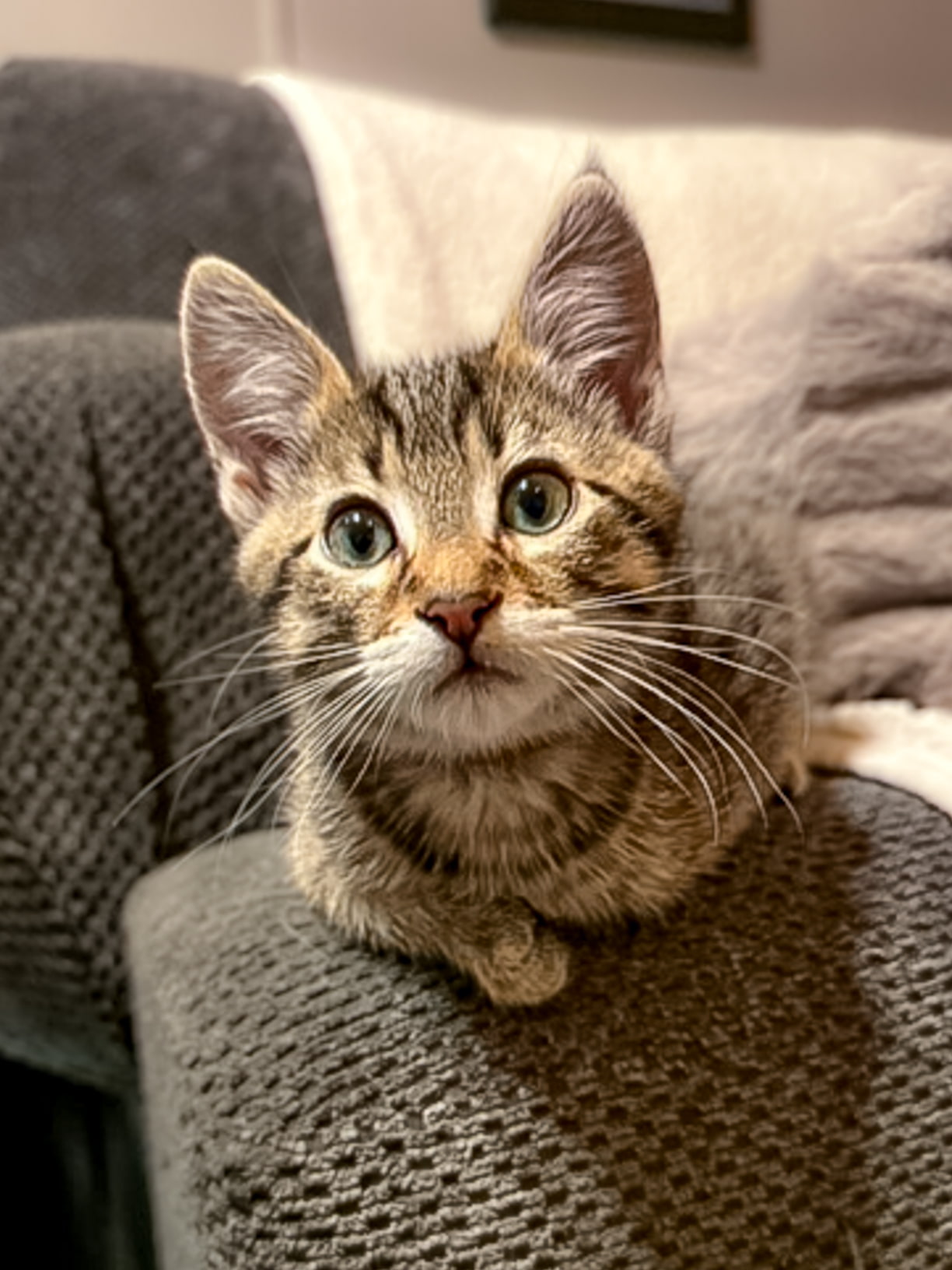 I'm a handsome, playful boy who loves to play, especially with my siblings! We get into a bit of trouble, but it keeps our foster laughing. When I'm tired, I'm very cuddly and love to purr while being petted. I have the cutest little ear tips and soft fur. I can't wait to find my new home! #playplayplayallday"