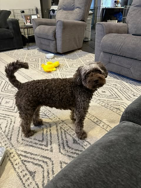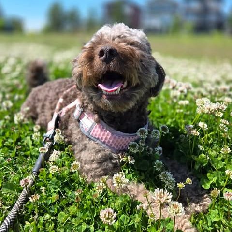 Hello! My name is Sage and I am a cutie patootie little Aussie Oodle. I can come across as a little unsure and I often seek reassurance from my humans but I am a sweet little girl who just finds this world a big place. I need a family who will continue working with me, a family who makes me feel secure. My current family has been amazing with me, but unfortunately with the new small human, I just can't seem to settle. I know they have tried, but I just don't trust those tiny beings, they are too fast and I never know what their intentions are. I am such a good girl and so very smart and love to be praised and receive treats when I show you what I can do. I love a leash adventure and I love being where my humans are. My mom currently bathes me at home regularly to help with my allergies and cuts my nails all by herself. We really have bonded over the years and I hope to find someone who loves me and accepts me as much as my family did. Ideally, I would thrive in an adult only environment. I adore routine and structure. I would also appreciate calm, compassion and predictability. I need a home willing to work with me and to continue to work with my fear-based behaviours in a force free, positive manner. I just need someone to help me feel safe, grow my confidence and most importantly, love me..