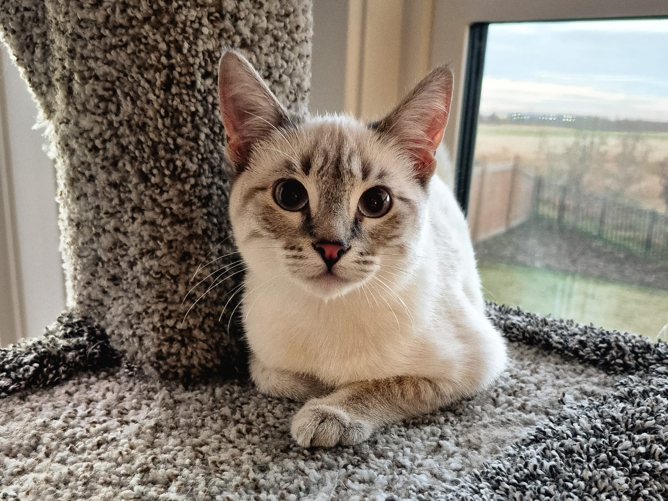 I am fixed, microchipped, and dewormed. The number of vaccines will depend on the length of care. I must be fed at least one meal of wet food a day for hydration. Wet food is important, as it's best for kitties, so please make sure it's in my diet. Wet food is higher in protein and can be lower in carbs. It also gives added moisture, which is important, as dry-food-only-fed cats tend to be dehydrated, which can lead to UTIs.