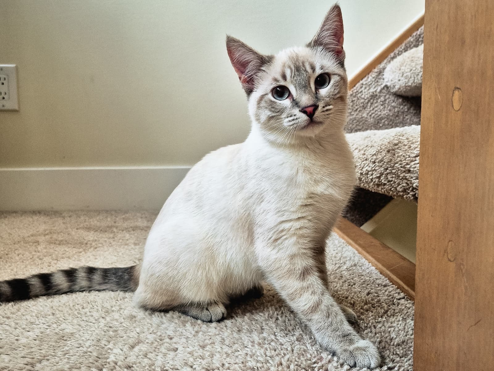 I do require a calm, quiet home, as I startle very easily with loud noises and fast movements. Once settled in, I am very much a sweetie and well worth the invested time in me.