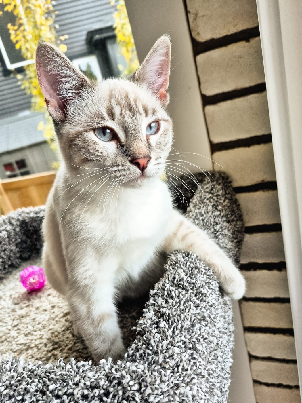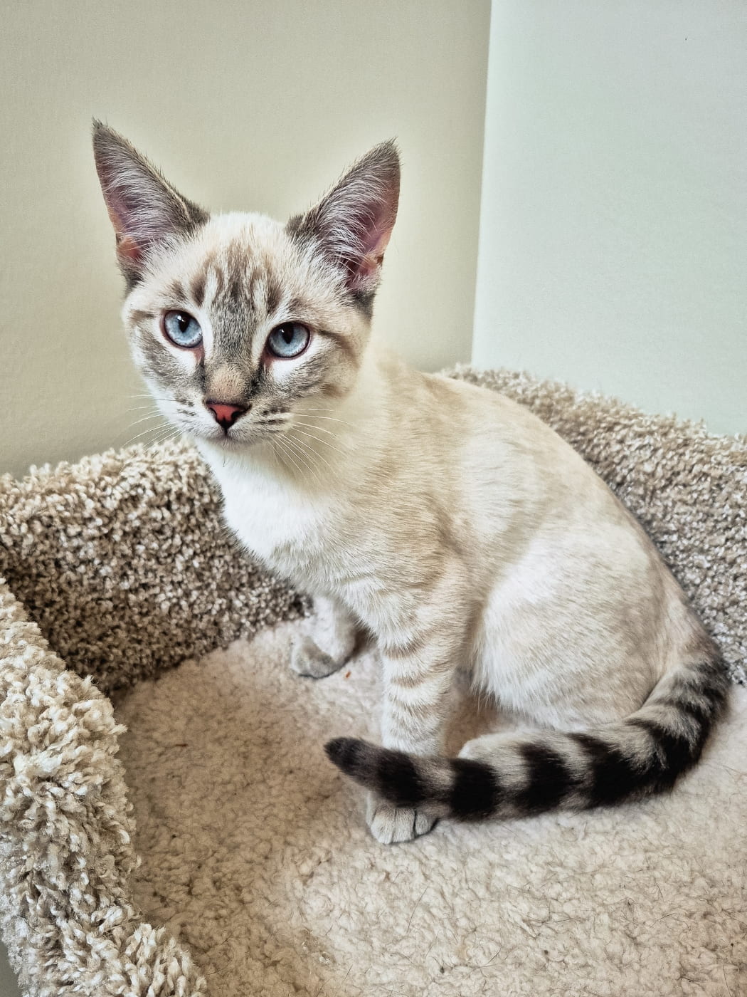 I am a sweet-natured, shy girl who enjoys playing with my toys and my sister. Once tired and settled in, I am a huge little lap cat. I will keep you laughing with my kitten antics and make you fall in love with me over and over again while I purr on your lap. I may not be an instant bestie, but I am well worth the wait. Just give me time, patience, and love. And I will give you back that love tenfold. #shybutsweet