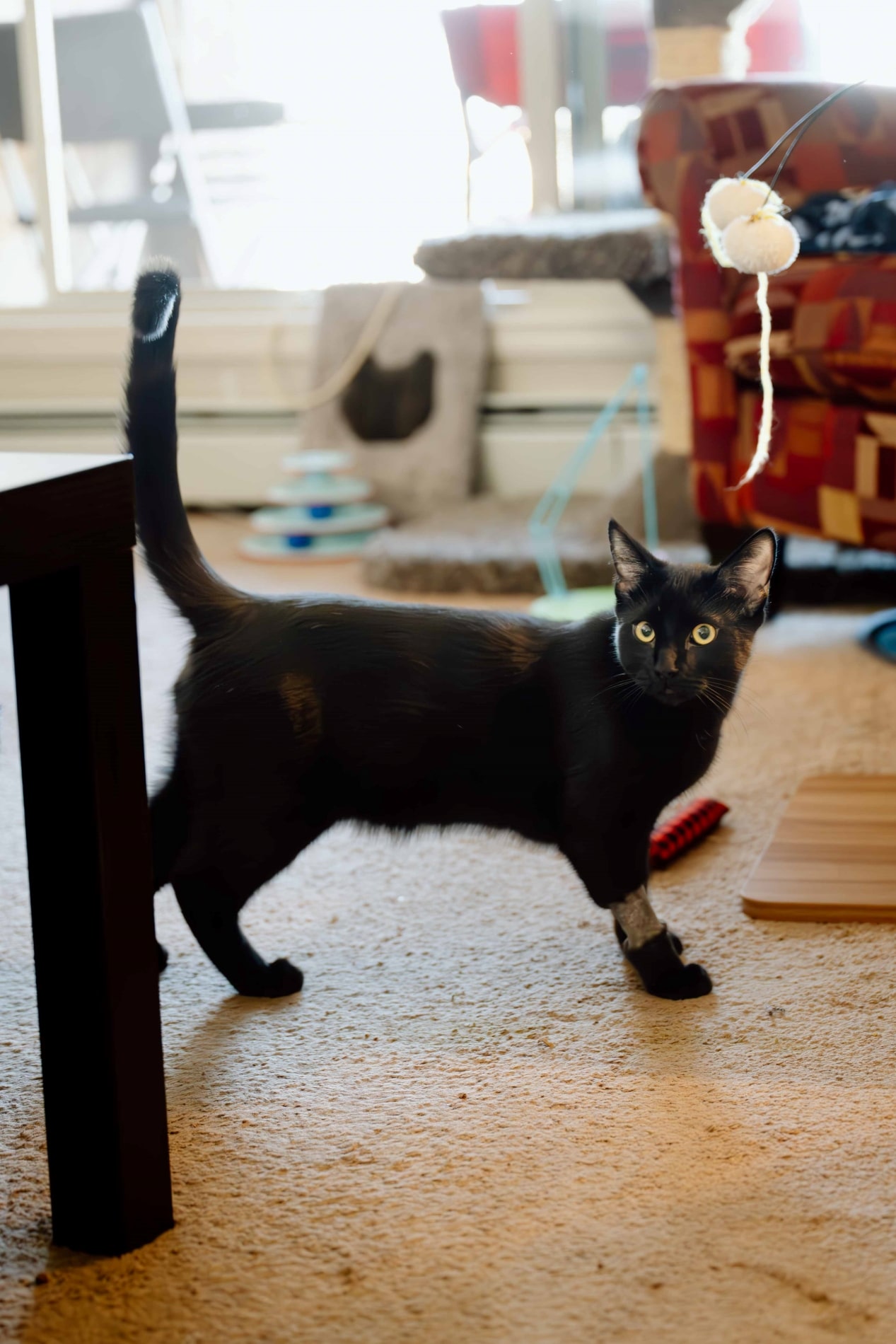 I look like a true house panther, with quite the talkative side. I will cuddle when I want to, and I will demand it by coming on you and not letting you leave. It's good bladder training, I hear. Luckily it's not an everyday, all-day thing. But I will sleep with you every night. I am still a typical teenager, kitten, and I love to play and play. I have a curious side to me but I am still quite shy with strangers. #shybutsweet