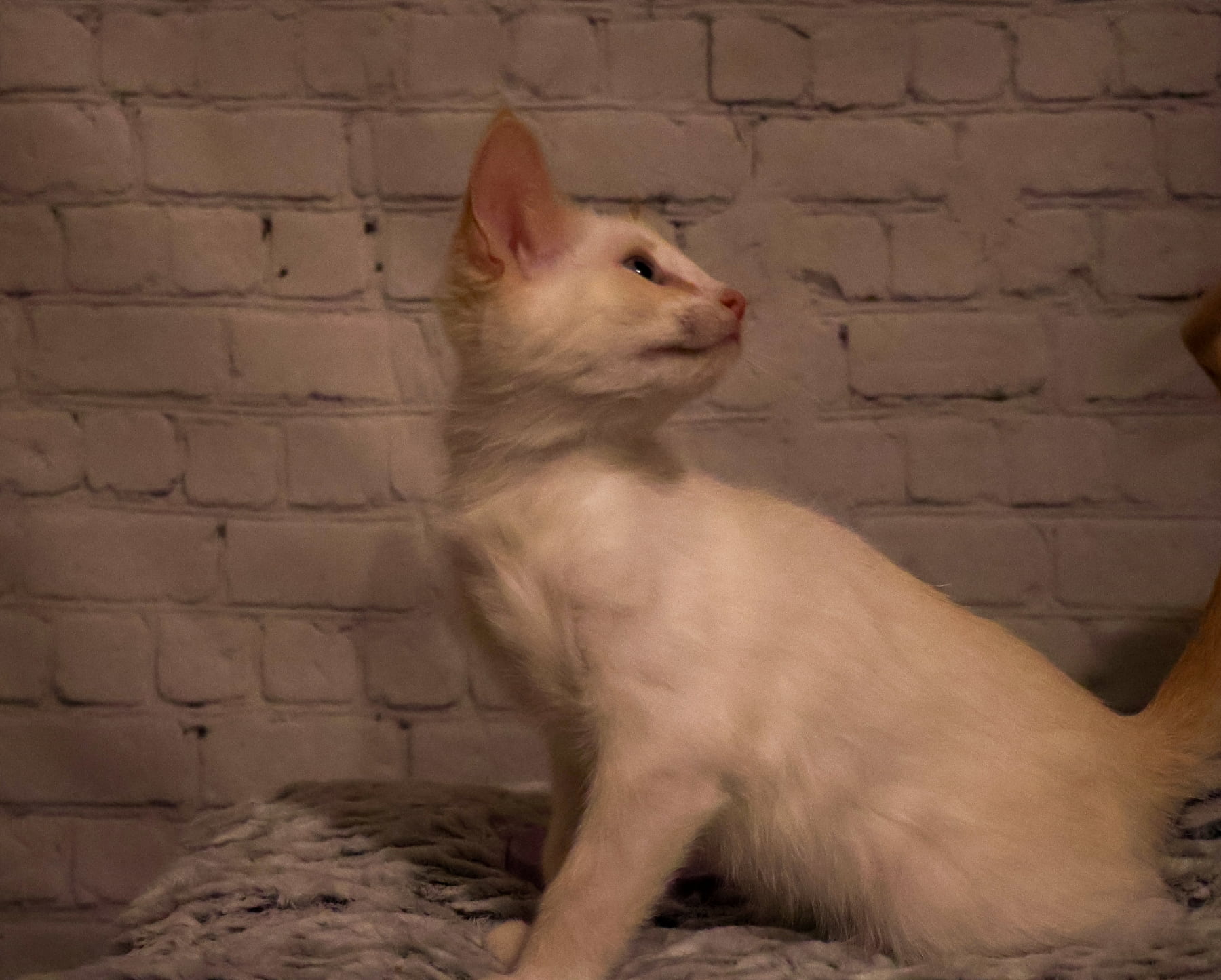 I am a stunning flamepoint kitten; my ginger face, legs, and tail will grow darker as I age. You might be shocked to hear I was born all white! I love to play, and I love to chat too. I am often found wrestling with my siblings. I do have an affectionate side, but I am not that cuddly. However, I am generally often around you and will strike up a conversation to let you know what you missed while you were away. If you are looking for a very playful, very chatty, very handsome kitten. I am your boy! #playplayplay #colorpointshavemuchtosay