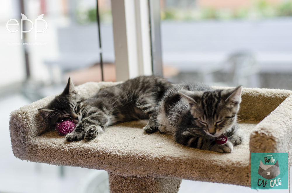 The brainchild of friends Aaron Getz, an event promoter, and Sarah Hoyles, a communications consultant and journalist, the Edmonton Pop-Up Cafe ran over the Canada Day weekend, allowing cat lovers from all over the city the chance to sup on their favourite beverage whilst playing, petting and cuddling some of Edmonton’s cutest foster cats, provided by Zoe’s Animal Rescue Society and the SAFE Team. The proud owners of two rescue cats, Aaron and Sarah came up with the idea a few months ago and engaged the services of some Edmonton organizations they’d worked with/had experience of in the past. There were 260 bookable spots available; when the initial allocation of 200 sold out within two days, an extra 60 spots were added which sold out in two hours!