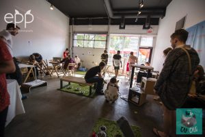 As a venue Aaron had worked with in the past, he knew Latitude 53 was the perfect space to hold the event. Specially built barriers were erected with an entrance door which, although expertly patrolled throughout the weekend, was almost breached by one wily cat. Aaron and Sarah had previously adopted a cat from Zoe’s so the main cat provider was an easy choice. Edmonton Pet Photography recorded the event for prosperity and you can check out their shots here. Completing the set-up was Iconoclast Coffee which provided the beverages for the thirsty cat lovers.
